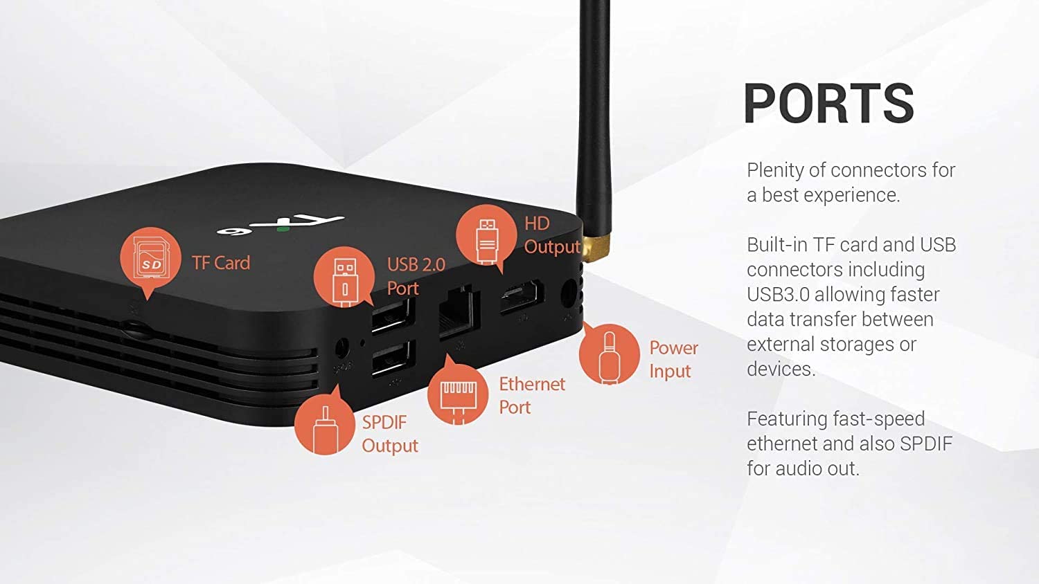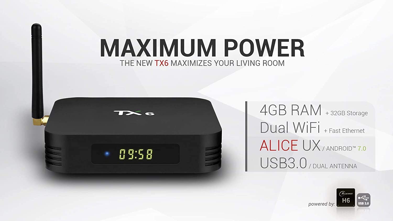 - TX6 Android TV Box 9.0 supports 2.4G/5G Dual Band WiFi and 100M Ethernet LAN, if you like using 5G WiFi, it exactly match your needs. Stable, Fast and High Quality Wifi signal.